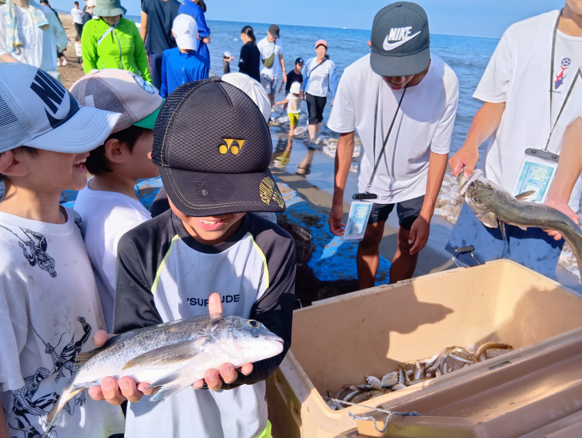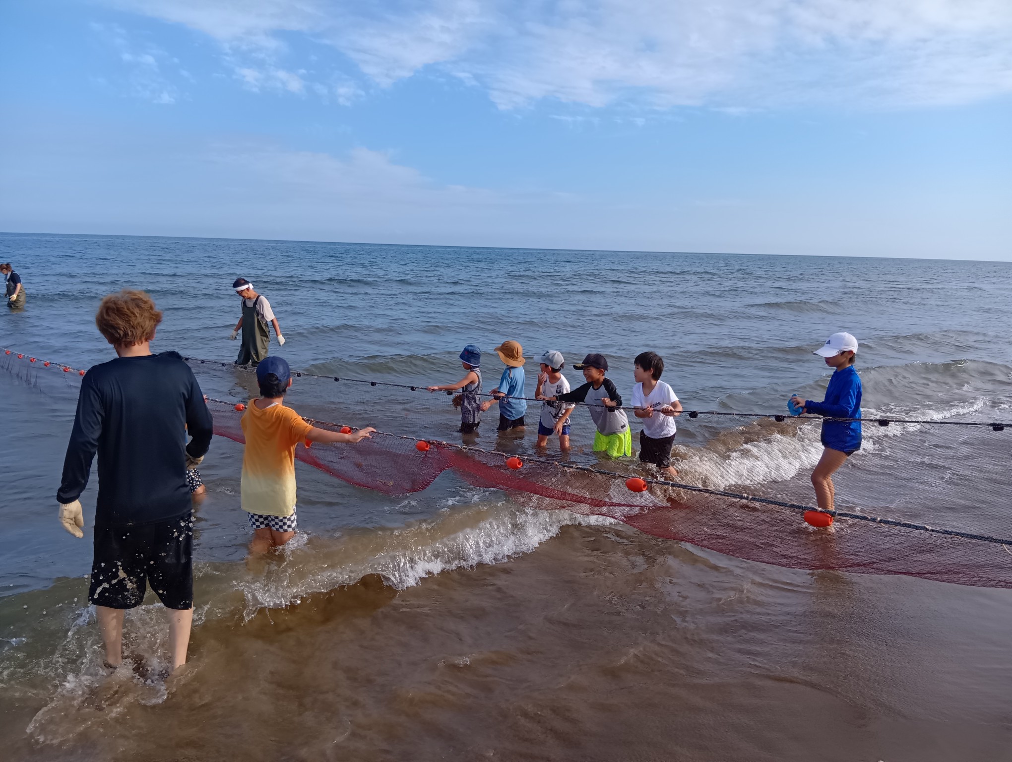 令和6年能登半島地震で液状化被害の大きかったかほく市大崎地区の子どもたちに、地元の海の魅力で元気になってもらいたいとの思いから、地引網プロジェクトを企画。スポーツコミッションかほくさん、地元漁師さんたちのご協力で実現することができました。当日には星稜大学の学生さんも応援に来てくれました。網にはたくさん魚がかかり、子どもたちもスタッフも笑顔あふれるイベントになりました。